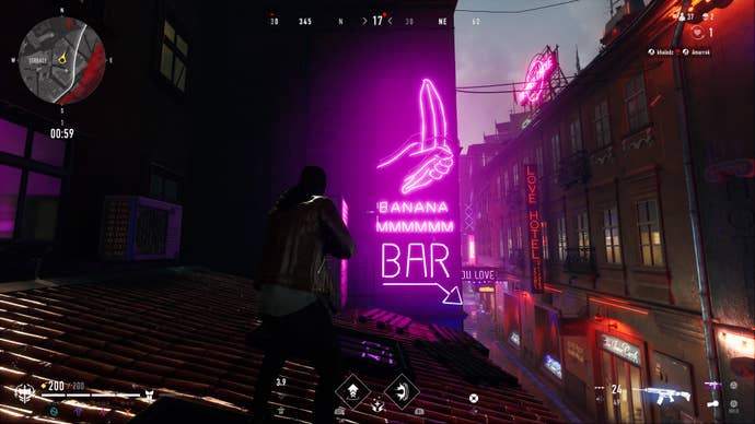 The map itself, a modern day rain-slicked Prague, is a nest of interlaced alleyways and sloping rooftops. Ageing Gothic structures clash with more modern construction, while the different regions are lit in subtle colouring so that leaping between areas feels like moving through scenes in a John Wick movie. It would be so easy to create a map set in this universe as a boring bundle of bricks and bushes, but the environmental design team nails it here. It’s early days, but it might be my favourite map in a Battle Royale.